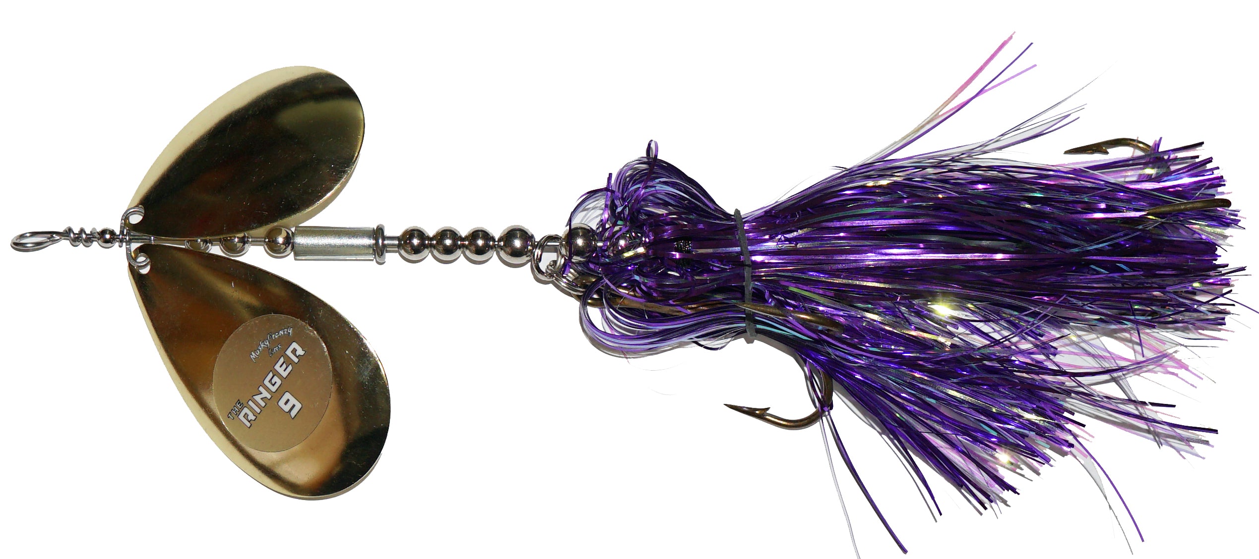 Frenzys first bucktail with 2 Colorado Blades, and the most aggressive bait they've ever made! Featuring a “free floating” sleeve on the shaft of the bait. This sleeve has a slot down the side, which creates a unique vibration and “ringing” sound! This sound is something fish have never heard before, which makes it ideal for fishing highly pressured water, deep structure, and windy days. Combine the vibration of the Stagger Colorado Blades with the “Ringer” sleeve, and you have an absolute one-of-a-kind bait! Like all Frenzy bucktails, they are built with custom one piece clevis for perfect spin and engagement!
