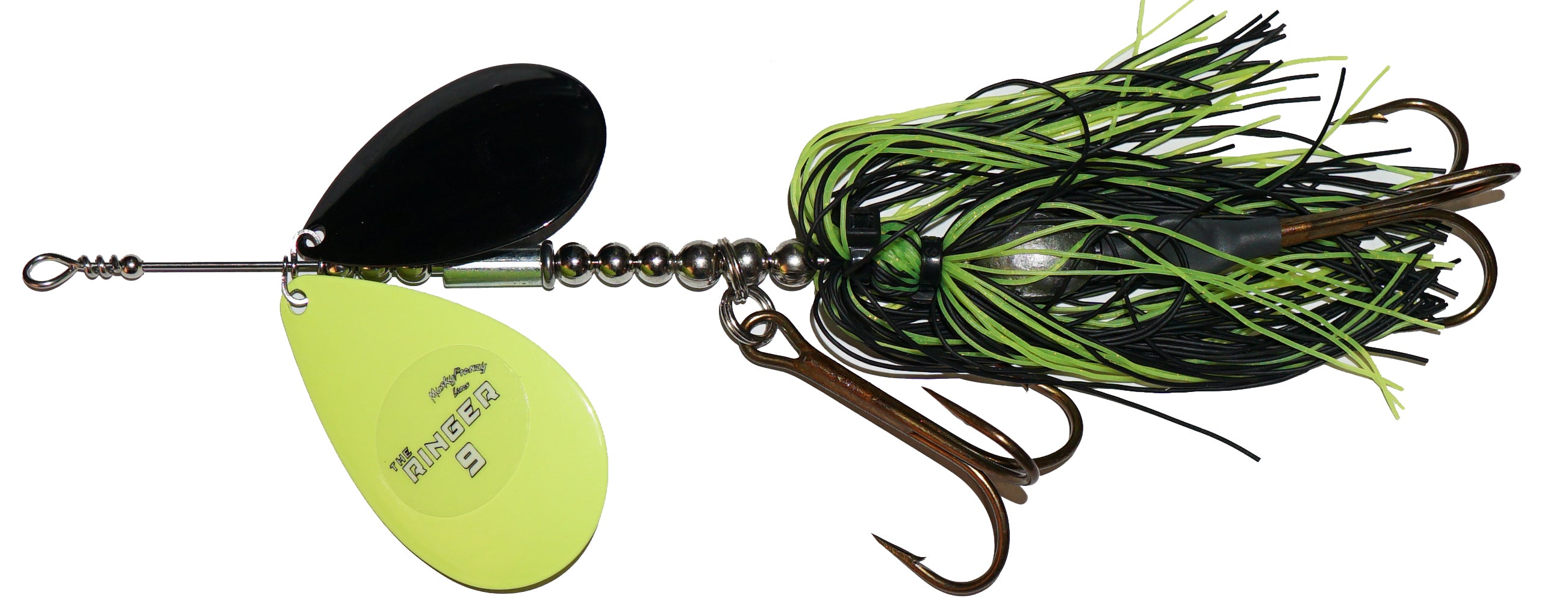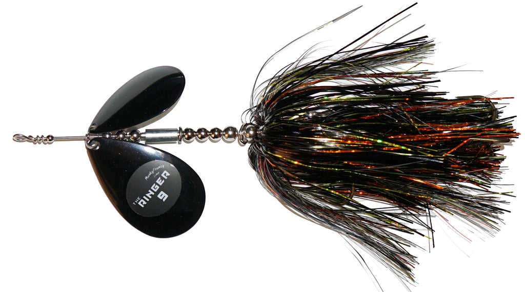 Frenzys first bucktail with 2 Colorado Blades, and the most aggressive bait they've ever made! Featuring a “free floating” sleeve on the shaft of the bait. This sleeve has a slot down the side, which creates a unique vibration and “ringing” sound! This sound is something fish have never heard before, which makes it ideal for fishing highly pressured water, deep structure, and windy days. Combine the vibration of the Stagger Colorado Blades with the “Ringer” sleeve, and you have an absolute one-of-a-kind bait! Like all Frenzy bucktails, they are built with custom one piece clevis for perfect spin and engagement!
