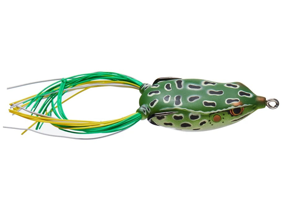 The Bronzeye Frog 60 was designed by MLF Angler Dean Rojas. The Bronzeye Frog 60 has a real attitude and is a leaner meaner version of its big brother. The body has been redesigned to maximize the hook-up ration on the Gamakatsu EWG Double Hook and comes in an array of fish-catching colors.