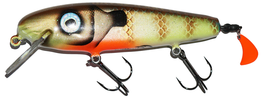 Each bait is hand made out of wood, hand painted, and hand assembled.