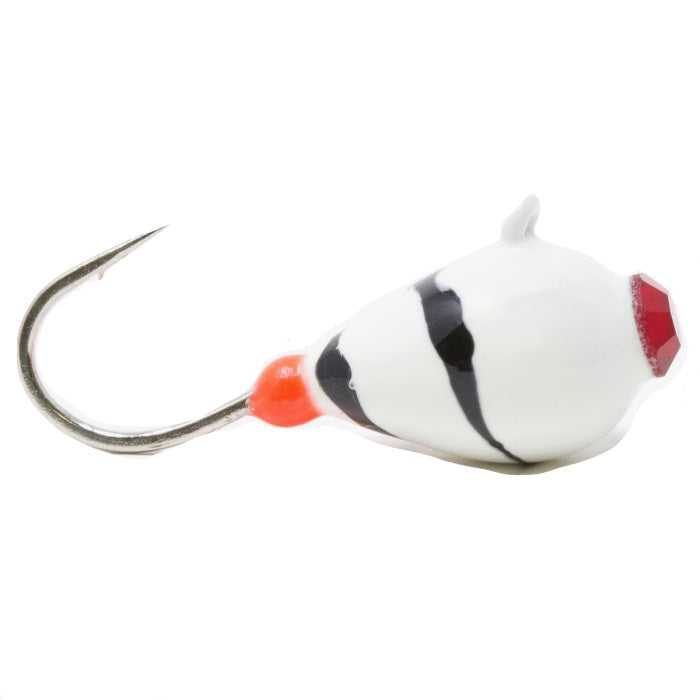 Named for its appearance, the Swirl Drop offers another cutting edge design to the lineup of deadly tungsten jigs by Clam Pro Tackle. The “swirl” pattern imitates color patterns common in insects. And it has all the quality features anglers expect from Clam Pro Tackle; an acrylic epoxy coating for durability, a trailing glow bead that offers an innovative glow pattern, and the Swarovski gem in the nose provide light reflection. All are designed to attract fish and elicit more strikes.