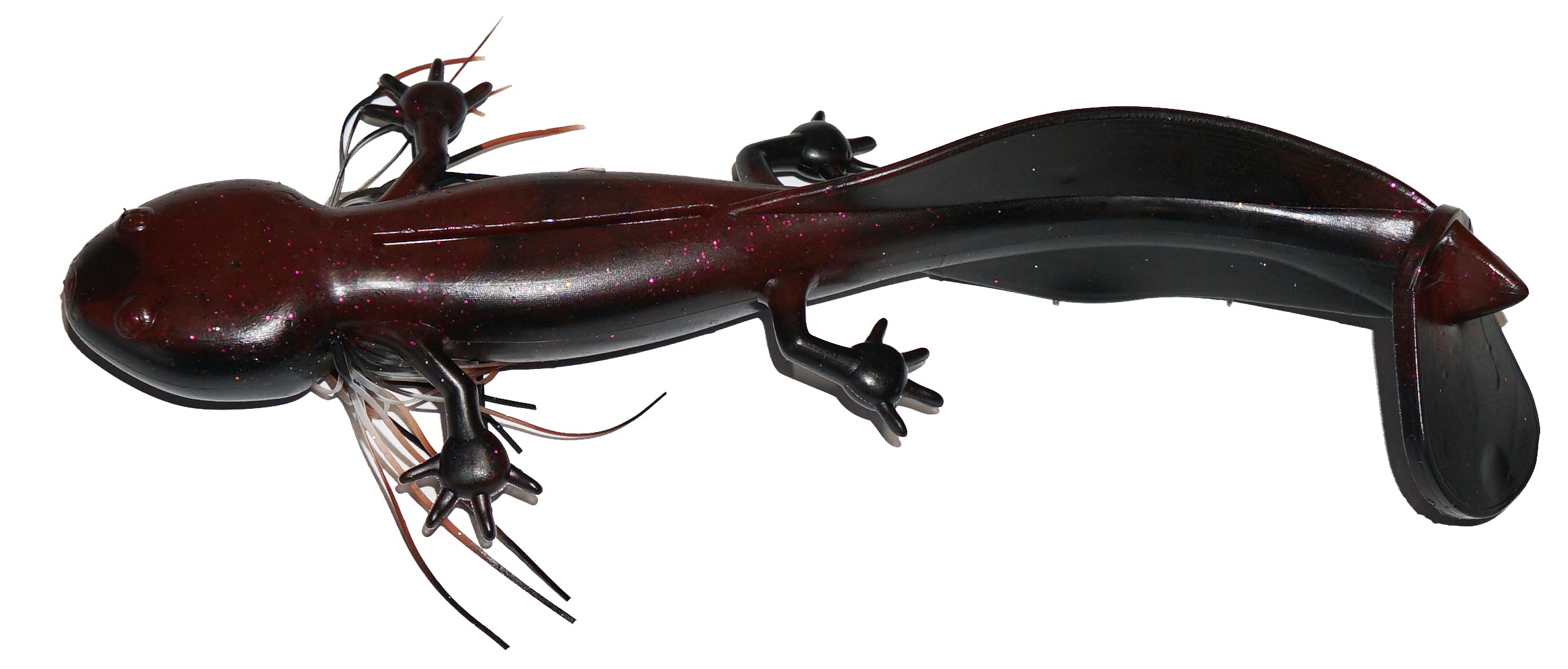 The new FishLab Slam-A-Mander is a heavy cover swimbait. With a heavy tail kicking action, the Slam-A-Mander can be fished in several ways including a classic swimbait presentation on a swim jig, vibrating jig, or weighted swimbait hook. The salamander-like profile also excels on slower stop-and-go presentations. 3 per pack.