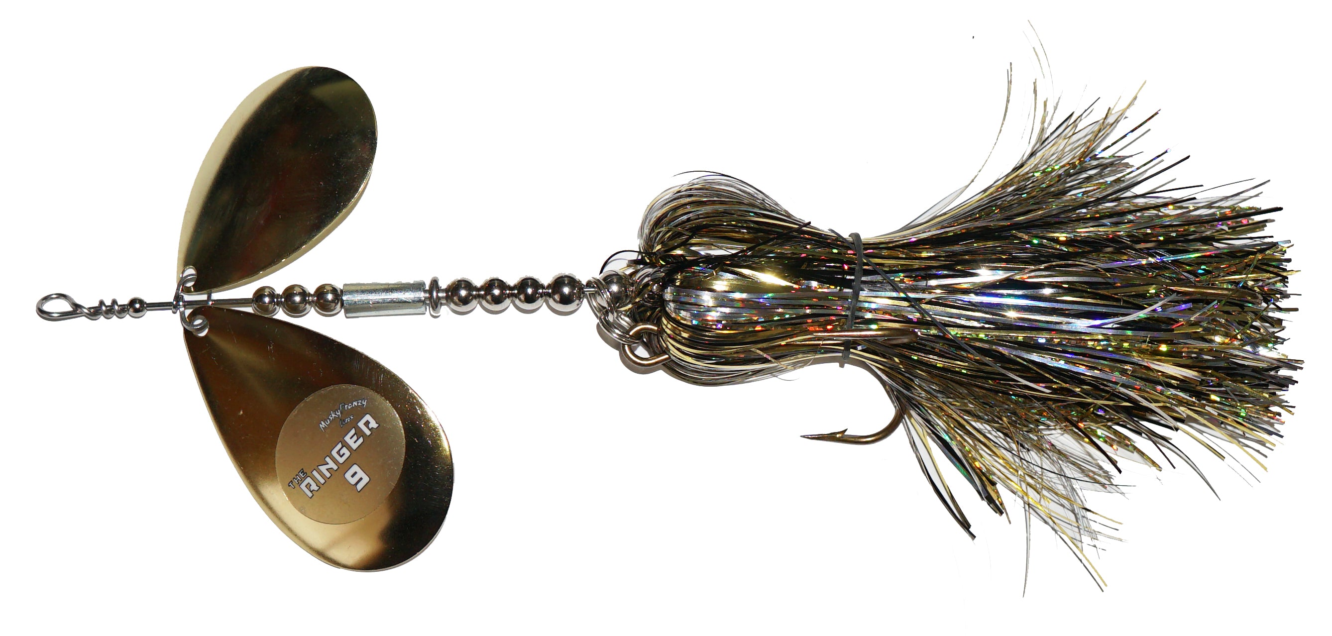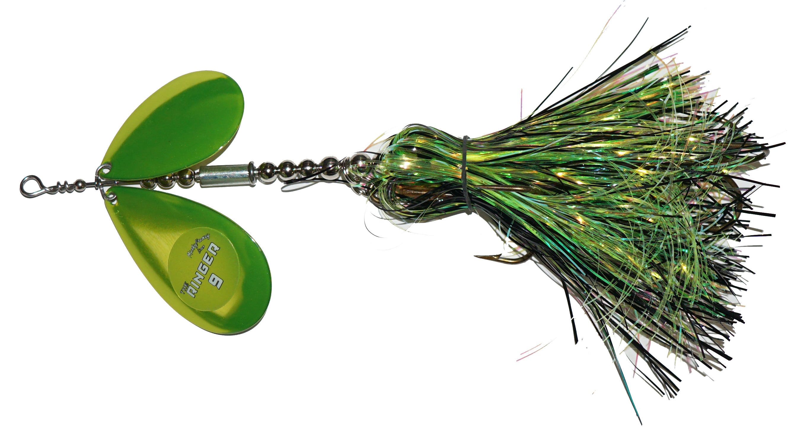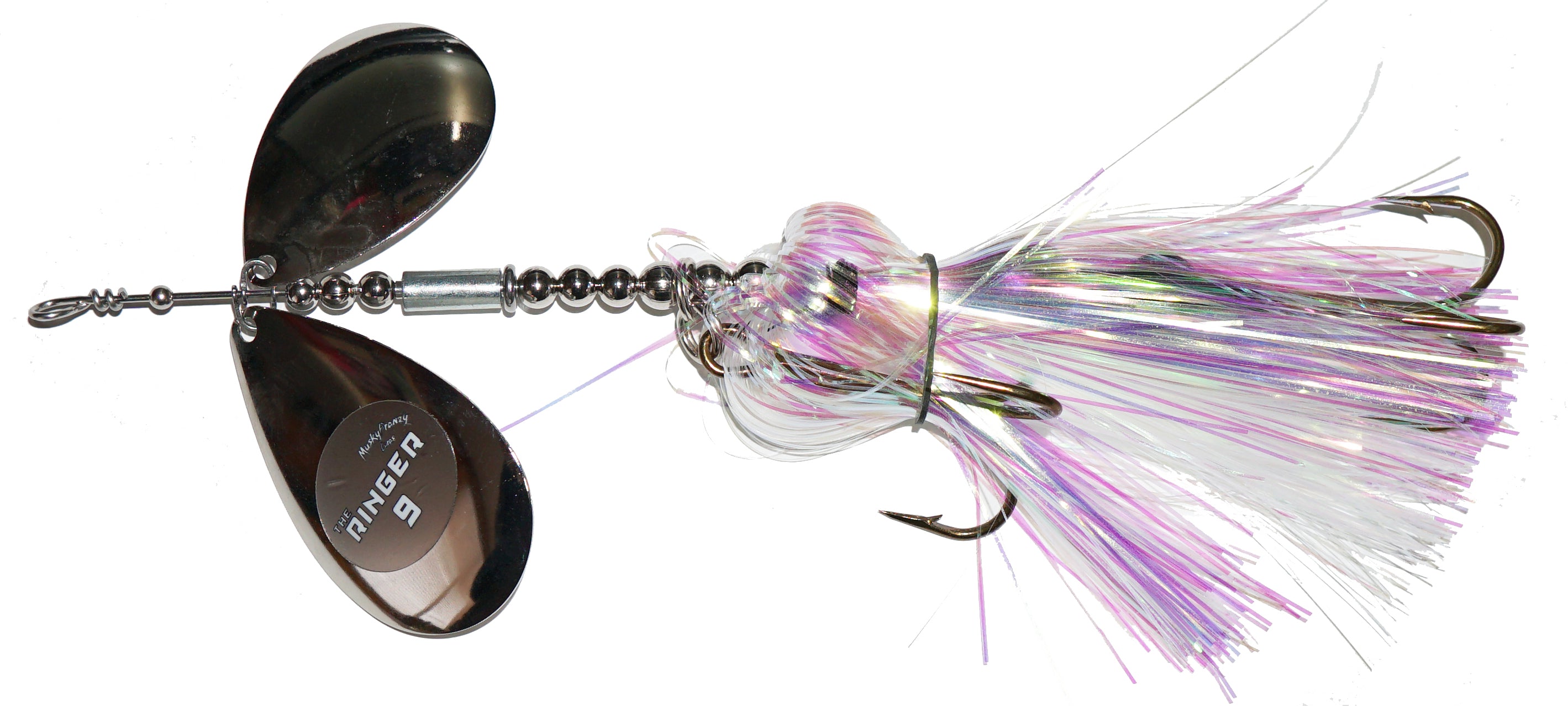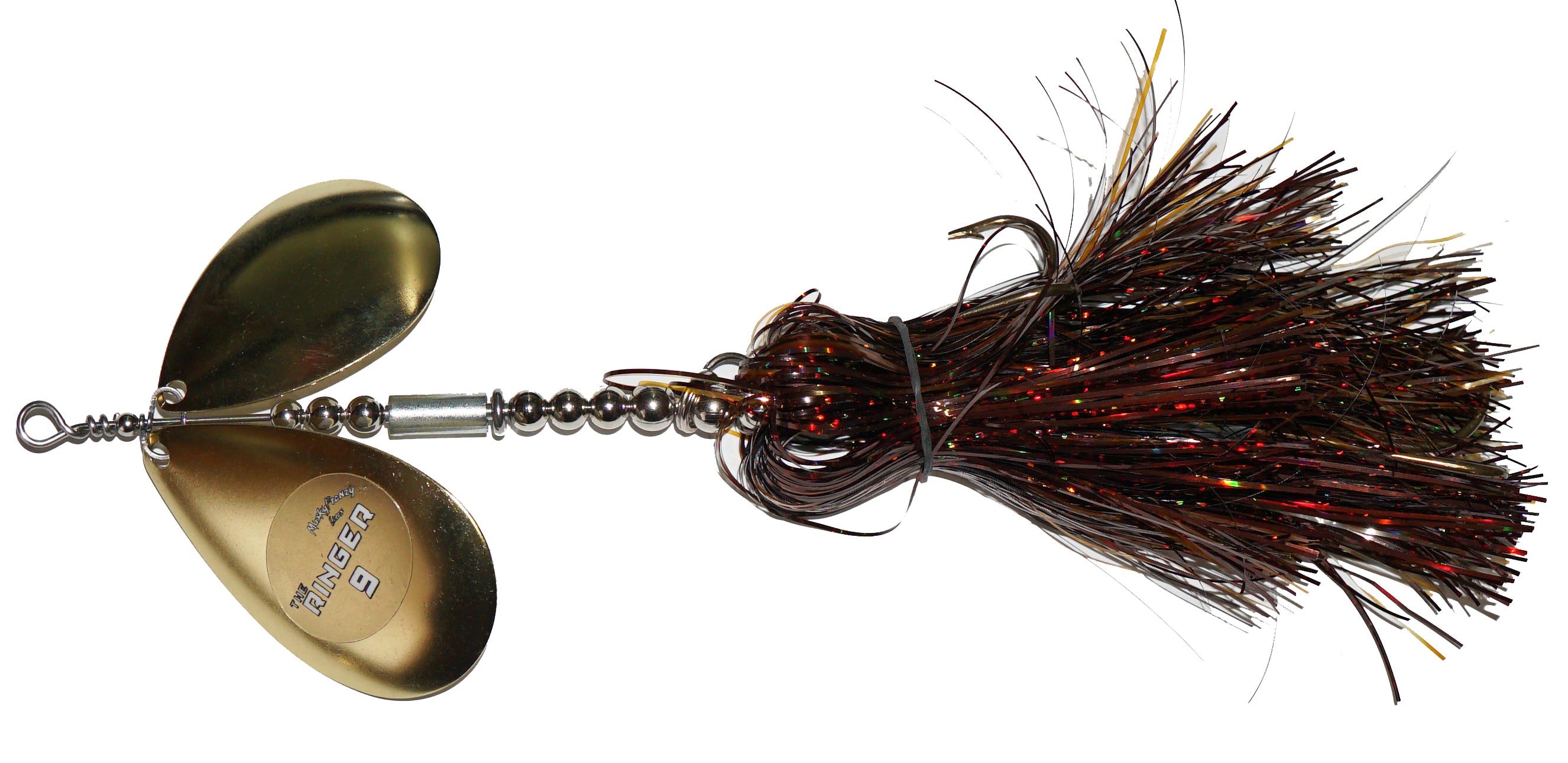 Frenzys first bucktail with 2 Colorado Blades, and the most aggressive bait they've ever made! Featuring a “free floating” sleeve on the shaft of the bait. This sleeve has a slot down the side, which creates a unique vibration and “ringing” sound! This sound is something fish have never heard before, which makes it ideal for fishing highly pressured water, deep structure, and windy days. Combine the vibration of the Stagger Colorado Blades with the “Ringer” sleeve, and you have an absolute one-of-a-kind bait! Like all Frenzy bucktails, they are built with custom one piece clevis for perfect spin and engagement!