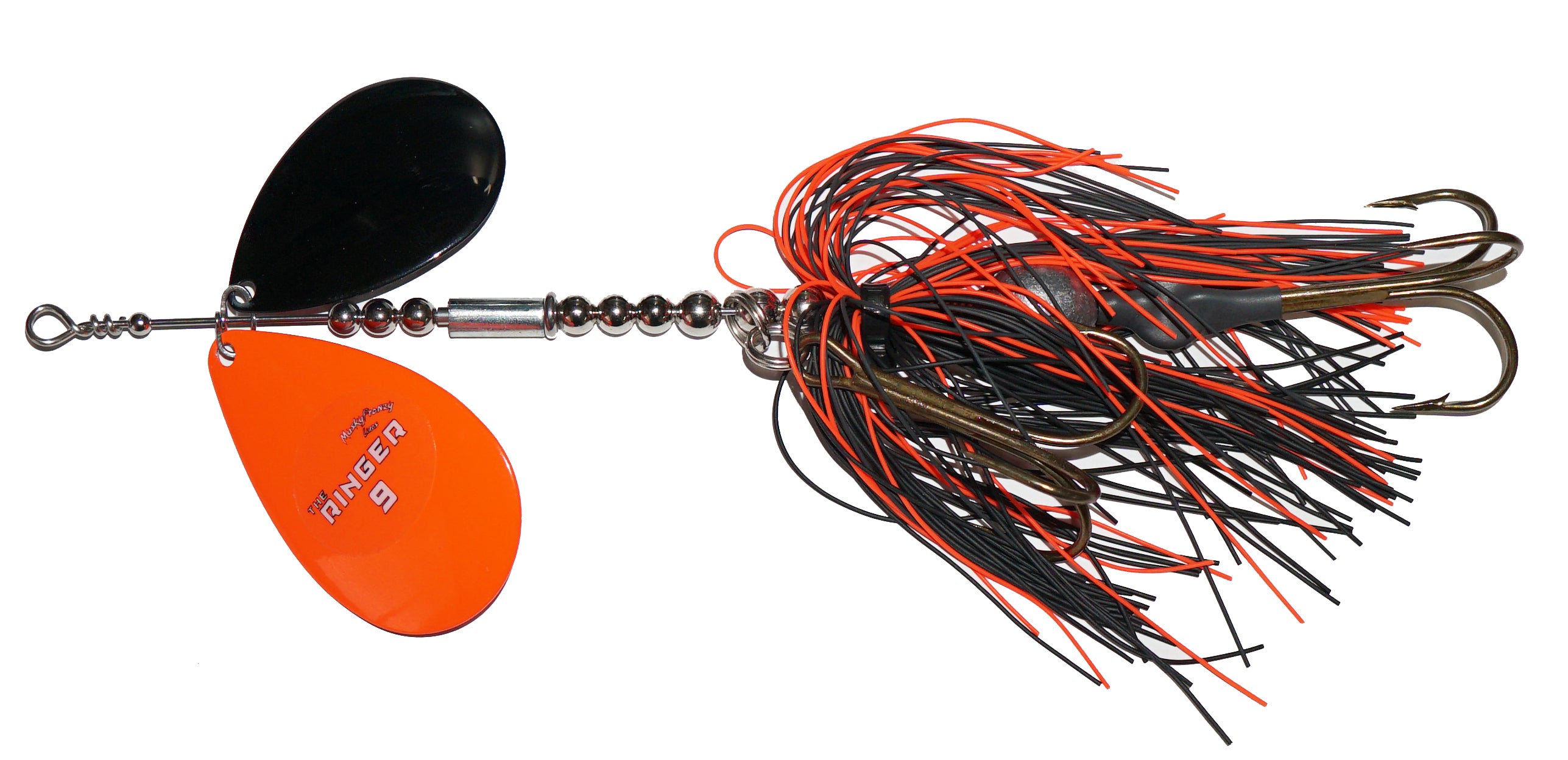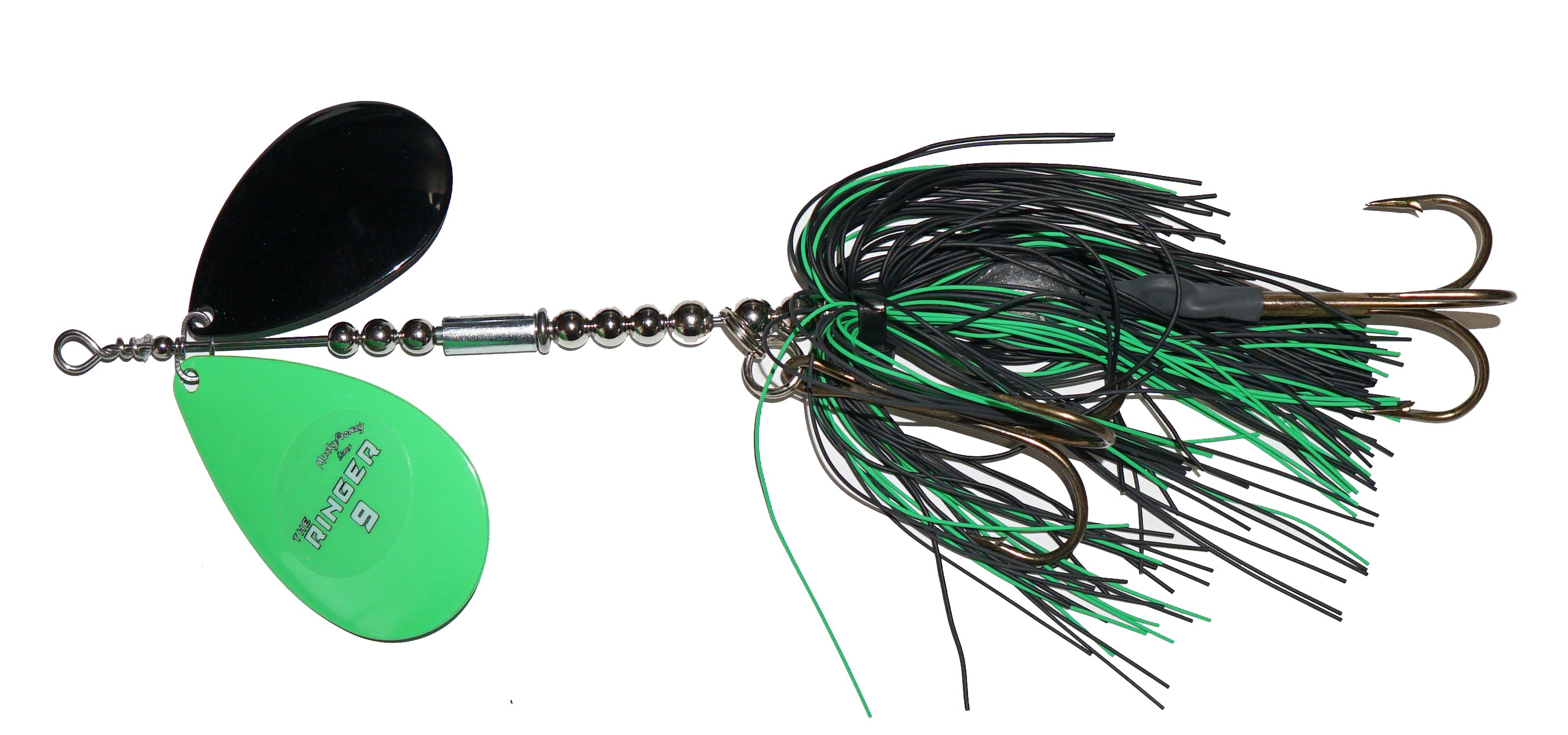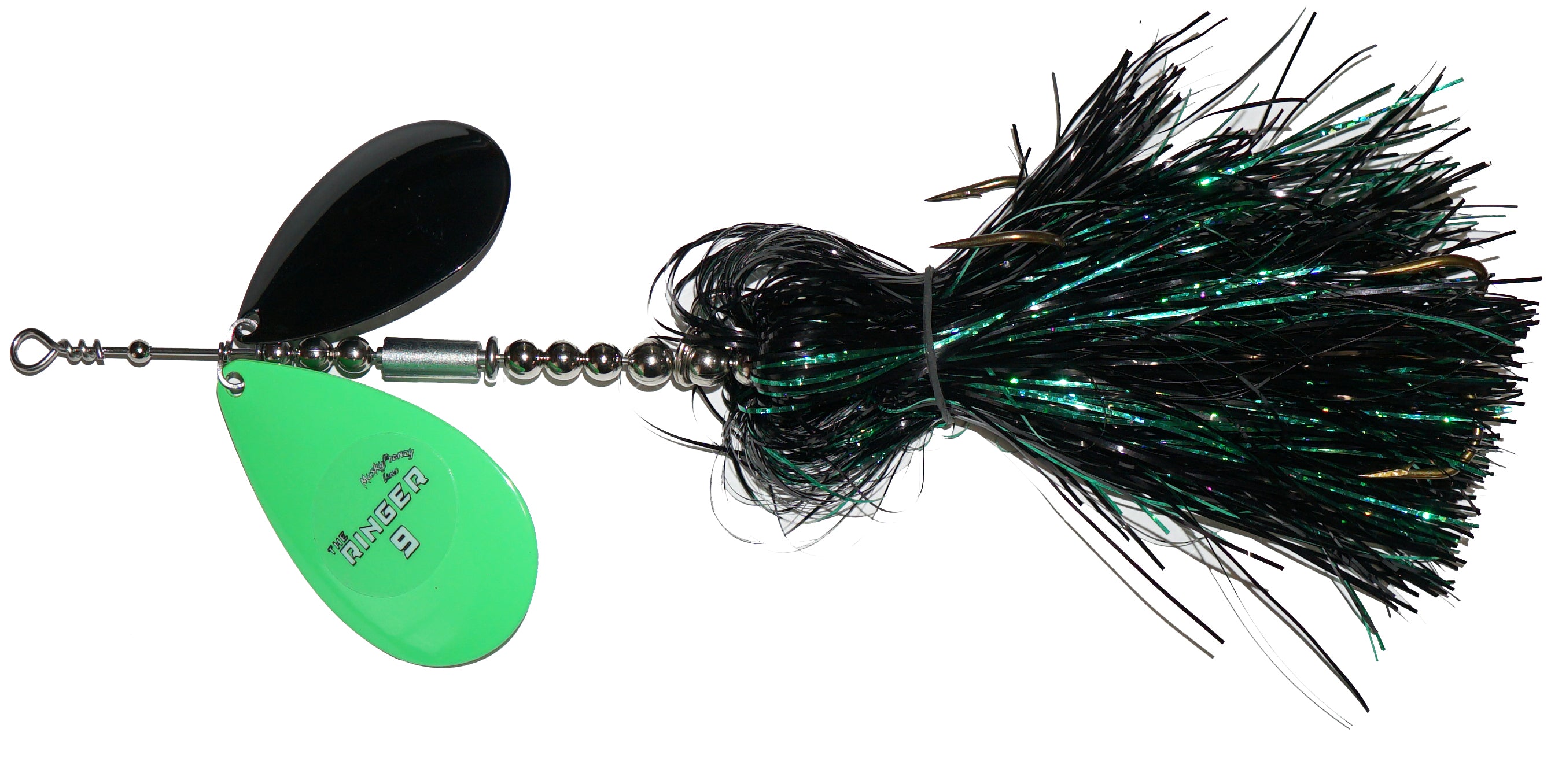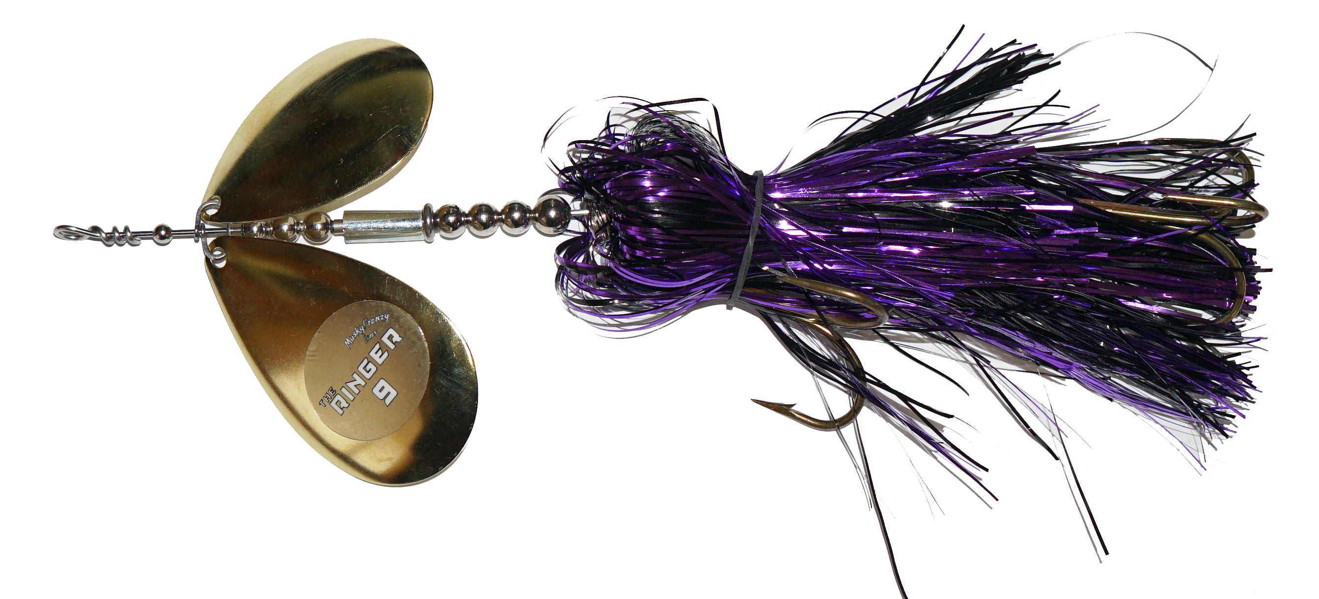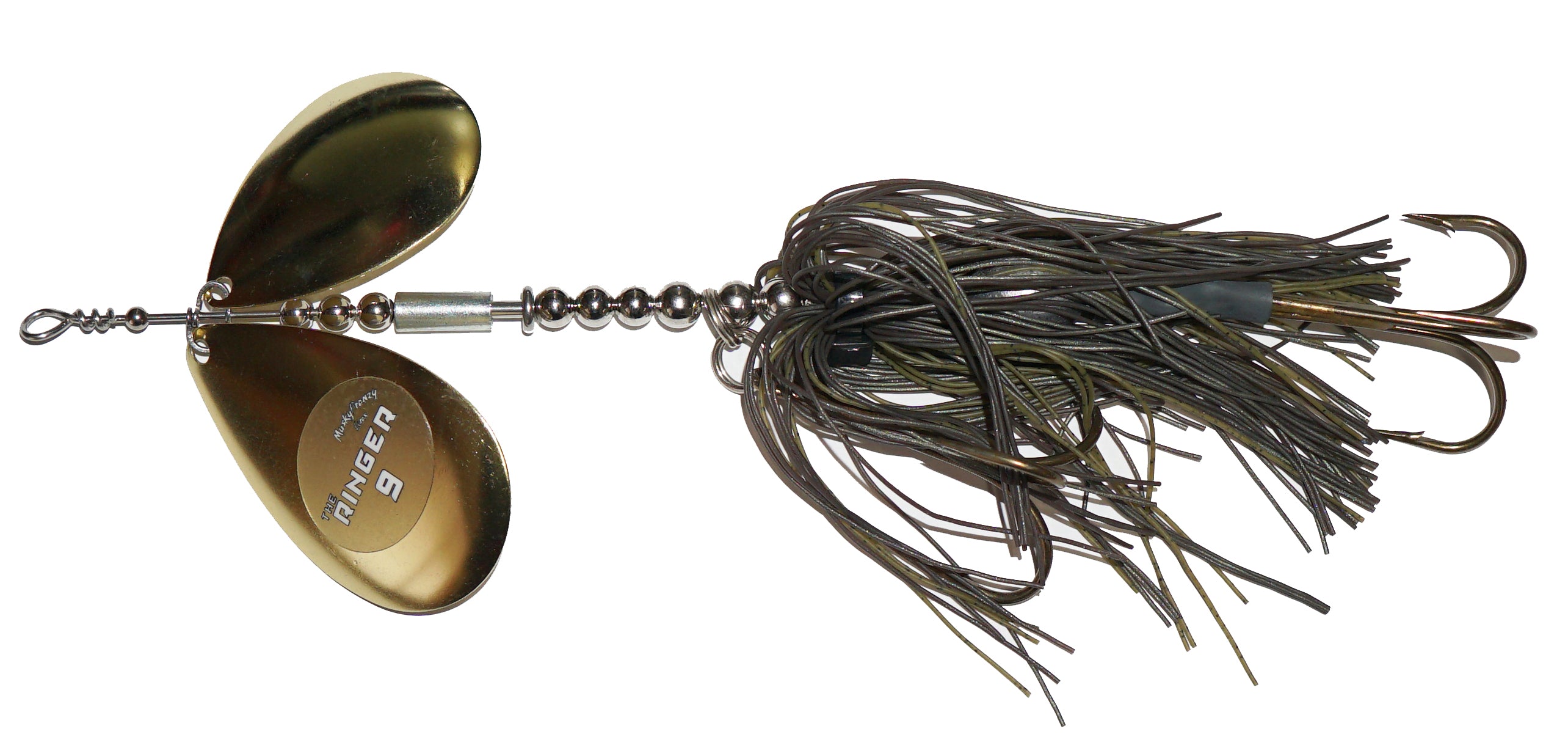 Frenzys first bucktail with 2 Colorado Blades, and the most aggressive bait they've ever made! Featuring a “free floating” sleeve on the shaft of the bait. This sleeve has a slot down the side, which creates a unique vibration and “ringing” sound! This sound is something fish have never heard before, which makes it ideal for fishing highly pressured water, deep structure, and windy days. Combine the vibration of the Stagger Colorado Blades with the “Ringer” sleeve, and you have an absolute one-of-a-kind bait! Like all Frenzy bucktails, they are built with custom one piece clevis for perfect spin and engagement!