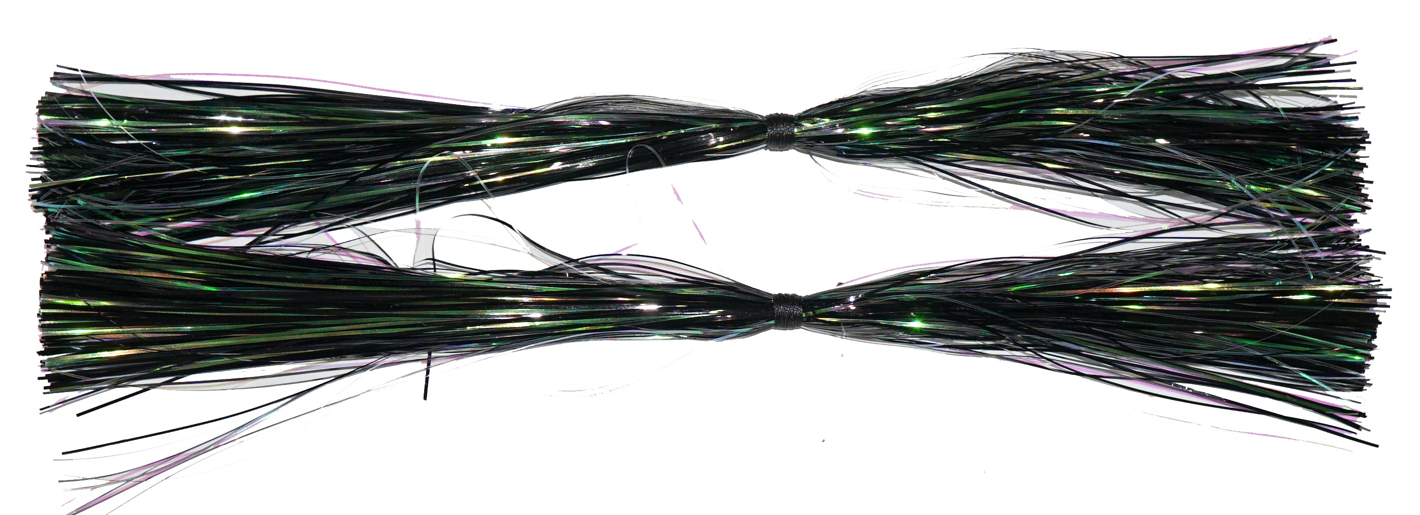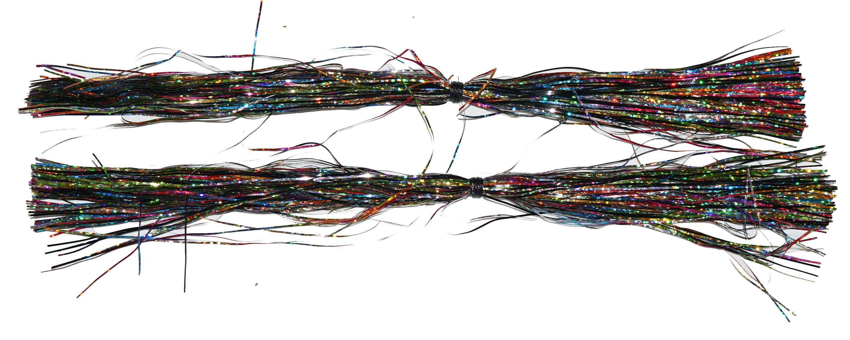 12” Pre-tied Flashabou Magnum skirts.  450 strands of blended Flashabou Magnum hand tied on coils. 2 skirts per package.